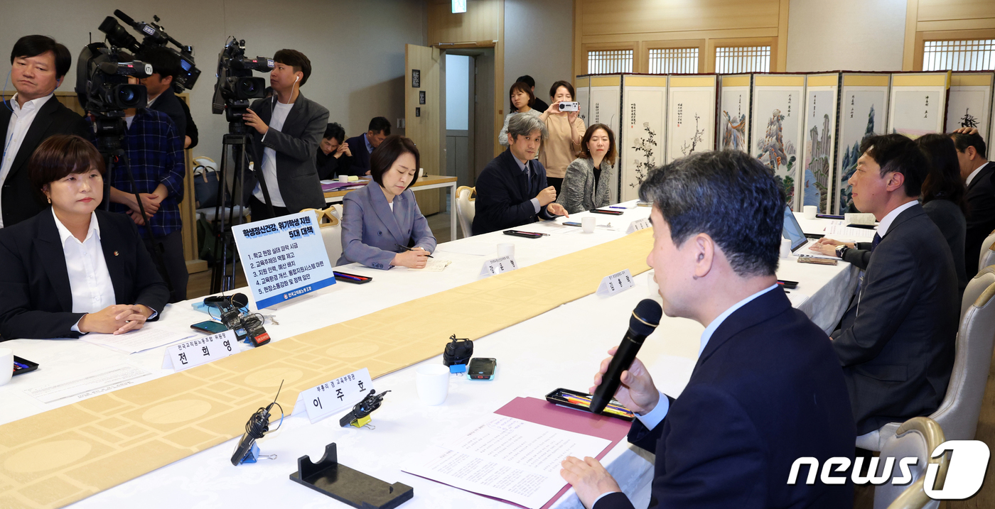 (서울=뉴스1) 김명섭 기자 = 이주호 사회부총리 겸 교육부 장관이 2일 오후 서울 종로구 세종대로 정부서울청사에서 열린 제6차 부총리·현장 교원과의 대화에서 모두 발언을 하고 있다. 2023.11.2/뉴스1