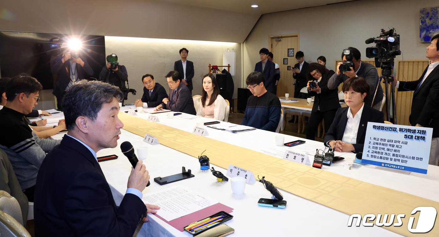 (서울=뉴스1) 김명섭 기자 = 이주호 사회부총리 겸 교육부 장관이 2일 오후 서울 종로구 세종대로 정부서울청사에서 열린 제6차 부총리·현장 교원과의 대화에서 모두 발언을 하고 있다. 2023.11.2/뉴스1