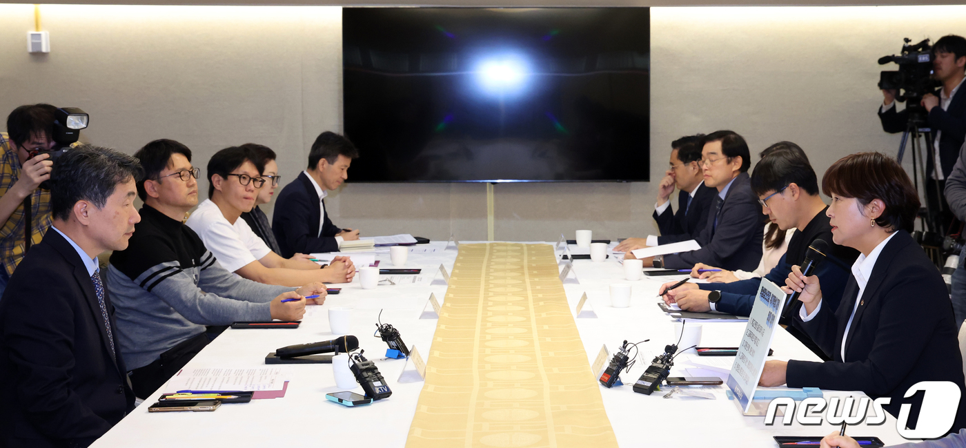 (서울=뉴스1) 김명섭 기자 = 전희영 전국교직원노동조합 위원장이 2일 오후 서울 종로구 세종대로 정부서울청사에서 열린 제6차 부총리·현장 교원과의 대화에서 모두 발언을 하고 있다. 2023.11.2/뉴스1