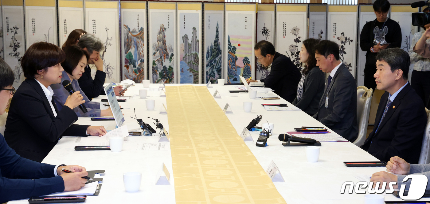 (서울=뉴스1) 김명섭 기자 = 전희영 전국교직원노동조합 위원장이 2일 오후 서울 종로구 세종대로 정부서울청사에서 열린 제6차 부총리·현장 교원과의 대화에서 모두 발언을 하고 있다. 2023.11.2/뉴스1
