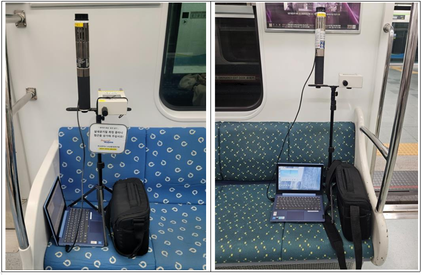 부산도시철도 실내 공기질 측정 모습. 부산시 제공 |