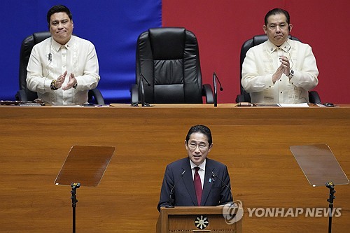 필리핀 의회서 연설하는 기시다(가운데) 일본 총리 |