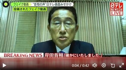 인공지능으로 만든 기시다 후미오 일본 총리의 가짜 동영상. 니혼테레비 캡처. |