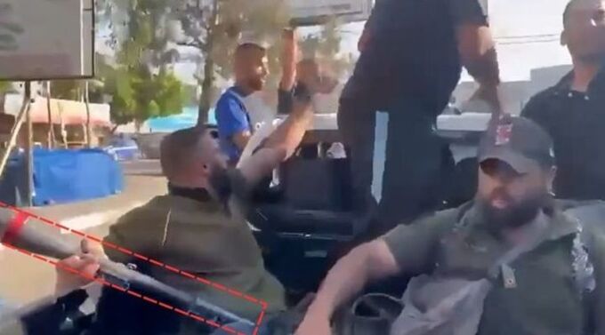 하마스 대원이 북한에서 제작된 F-7고폭 파편 로켓으로 보이는 무기를 들고 있다. 군사 전문 블로거 ‘War Noir’ X 계정 캡처 |
