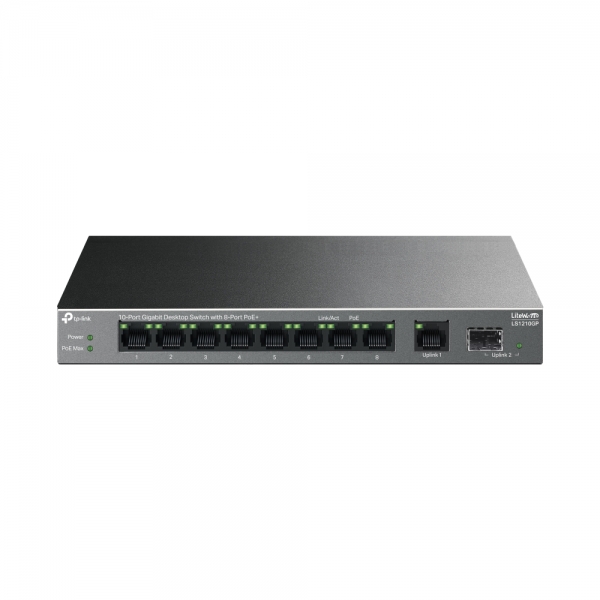 'LS1210GP'는 9개의 10/100/1000 Mbps RJ45의 풀 기가비트 포트를 지원하며 1개의 기가비트 SFP 포트를 통해 최대 20Gbps의 스위칭 용량을 제공한다. 또한 8개의 PoE+ 포트를 통해 단일 케이블을 통해 IP 카메라, 액세스 포인트, IP전화와 같은 고정 장치에 쉽게 연결하고 데이터 및 전력을 공급한다.