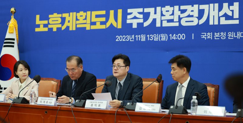 [서울=뉴시스] 고범준 기자 = 홍익표 더불어민주당 원내대표가 13일 오후 서울 여의도 국회에서 열린 더불어민주당 노후계획도시 주거환경개선 특별위원회 회의에서 발언을 하고 있다. 2023.11.13. bjko@newsis.com <저작권자ⓒ 공감언론 뉴시스통신사. 무단전재-재배포 금지.> /사진=뉴시스화상 |