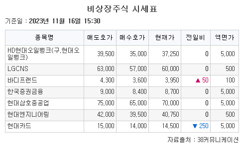 16일 비상장 주식은 하락 반전했다.