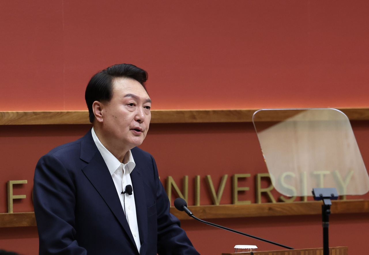 아시아태평양경제협력체(APEC) 정상회의 참석차 미국을 방문 중인 윤석열 대통령이 17일(현지시간) 미국 캘리포니아주 스탠퍼드대 후버연구소에서 열린 한일 정상 좌담회에서 모두발언을 하고 있다. [연합] |