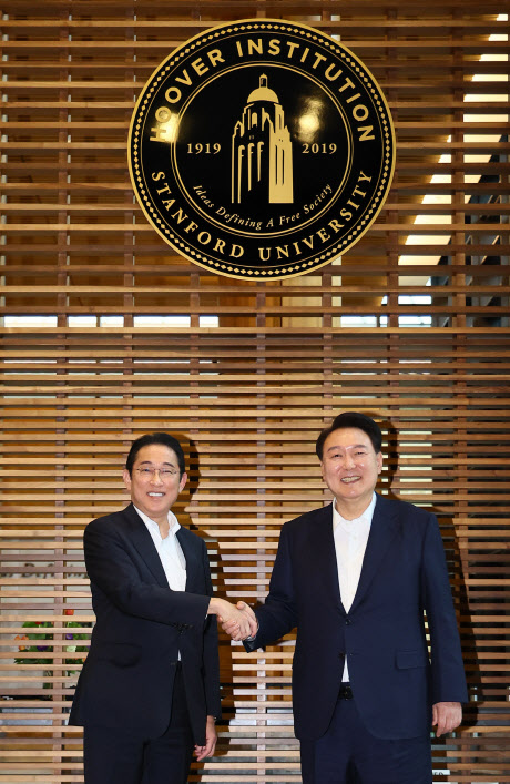 한편, 이번 행사에 앞서 윤 대통령과 기시다 총리는 현지에서 활동 중인 양국 스타트업 대표들과도 스탠퍼드대에서 간담회를 열었다. 윤 대통령은 “혁신에는 국경이 없다. 한국은 지난 8월 스타트업 코리아 전략을 발표했다”며 “국경 없는 스타트업 지원을 추진하고 있다. 국적이 어디에 있든 또 스타트업이 어느 위치에 있든 혁신을 꿈꾸는 인재들의 창업과 성장을 지원할 것”이라고 격려했다. 이어 “한국과 일본, 양국 스타트업의 경쟁력이 우수한 만큼 양국의 연대와 협력이 확대되면 훌륭한 시너지가 날 것이라고 기대한다”고 덧붙였다.