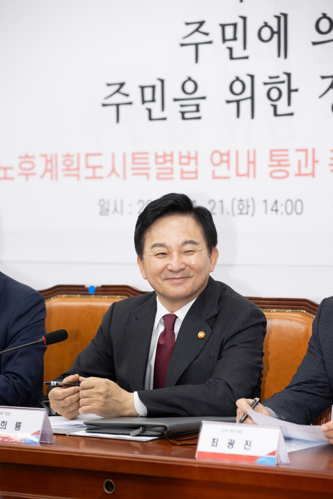 원 장관은 "올해 1기 신도시 5곳에 직접 가서 주민들의 목소리와 열악한 주거환경을 직접 보고 듣고 느낀 이후 주민들의 생활불편을 해소하는데 필요한 특별법이 한시라도 빨리 제정될 수 있도록 정부는 그 누구보다 열심히 뛰어왔다"면서 "최근 특별법 연내 제정 필요성에 대한 정부·여야 모두의 공감대가 형성된 만큼 이번이 천재일우의 기회라고 생각한다"고 강조했다.