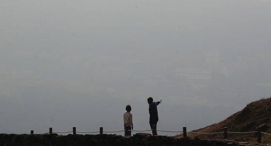 경기 오산시 보적사에서 바라본 도심이 미세먼지의 영향으로 뿌연 모습을 보이고 있다. 뉴스1 |