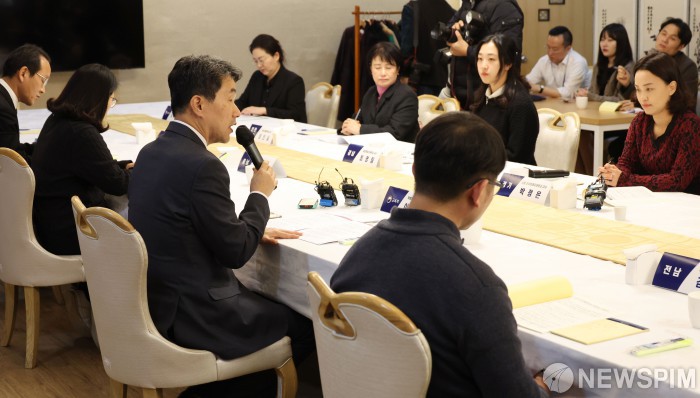 [서울=뉴스핌] 김학선 기자 = 이주호 부총리 겸 교육부 장관이 23일 정부서울청사에서 열린 제9차 부총리-현장 교원과의 대화에서 모두발언을 하고 있다. 이번 간담회에서는 이주배경 학생이 밀집해 있는 지역의 현장 교사와 함께 애로사항과 극복 사례 등을 나누고, 이주배경에 상관없이 모든 학생이 함께 성장할 수 있는 교육환경에 대해 논의했다. 2023.11.23 yooksa@newspim.com