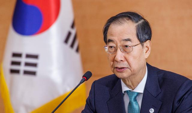 한덕수 국무총리가 24일 오전 서울 종로구 정부서울청사 별관에서 열린 제11차 미세먼지 특별대책위원회에 참석해 미세먼지 저감 노력에 대한 협조가 담긴 인사말을 하고 있다. 연합뉴스 |