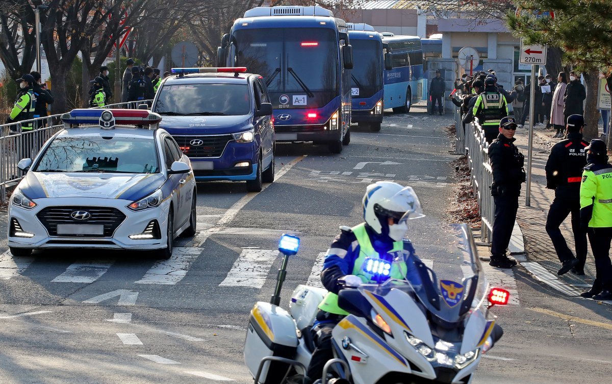 대구교도소가 설립 52년 만인 28일 오전 대구 달성군 화원읍 천내리에서 직선거리 약 12㎞ 떨어진 달성군 하빈면 감문리로 이전했다. 이날 오전 화원읍 대구교도소에서 수감자를 태운 법무부 호송버스와 이삿짐 차량 등이 경찰의 호위를 받으며 하빈면 신축 대구교도소를 향해 출발하고 있다. 2023.11.28/뉴스1 |