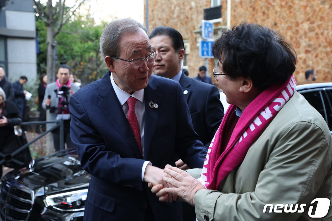 반기문 전 UN 사무총장이 2030년 세계박람회(엑스포) 개최지 선정일인 28일(현지시간) 프랑스 파리 르 팔레 데 콩크레 디시(Le Palais des Congrés d’Issy)에서 열린 '국제박람회기구(BIE) 제173차 총회'를 찾아 참석자들과 인사를 나누고 있다. 2023.11.28/뉴스1 ⓒ News1 이준성 기자 |