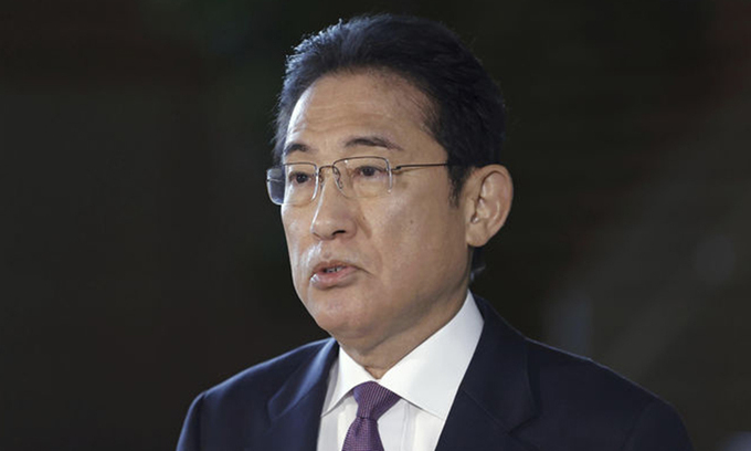 기시다 총리가 지난 21일 도쿄 관저에서 기자들과 대화하는 모습. AP뉴시스 |