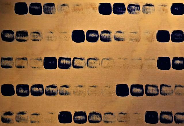 보관 중 침수를 겪은 국내 작가 이우환 '점으로부터'가 28일 2023 크리스티 홍콩 하반기 경매에서 유찰됐다. 크리스티 홍콩 코리아가 제공한 작품 사진과 한국일보가 홍콩 현지에서 촬영한 사진을 사진편집 프로그램인 '포토샵'을 통해 색상정보값을 변경해 보니 육안으로 봤을 땐 쉽사리 알아볼 수 없었던 침수 흔적이 뚜렷하게 드러났다. 경매를 주최한 크리스티 코리아 관계자는 이 작가의 작품 가치를 고려했을 때 작품의 보존 상태가 유찰에 가장 큰 영향을 미쳤던 것 같다며 아쉬움을 표시했다.