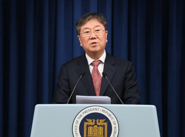 김대기 대통령 비서실장이 30일 서울 용산 대통령실 청사에서 대통령실 인사 개편안에 관해 발표하고 있다. 연합뉴스 |