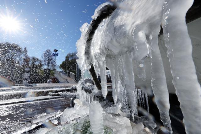 체감기온이 영하 10도를 넘나들며 동장군이 맹위를 떨친 30일 서울 여의도 한강변에 고드름이 맺혀 있다. 뉴스1 |