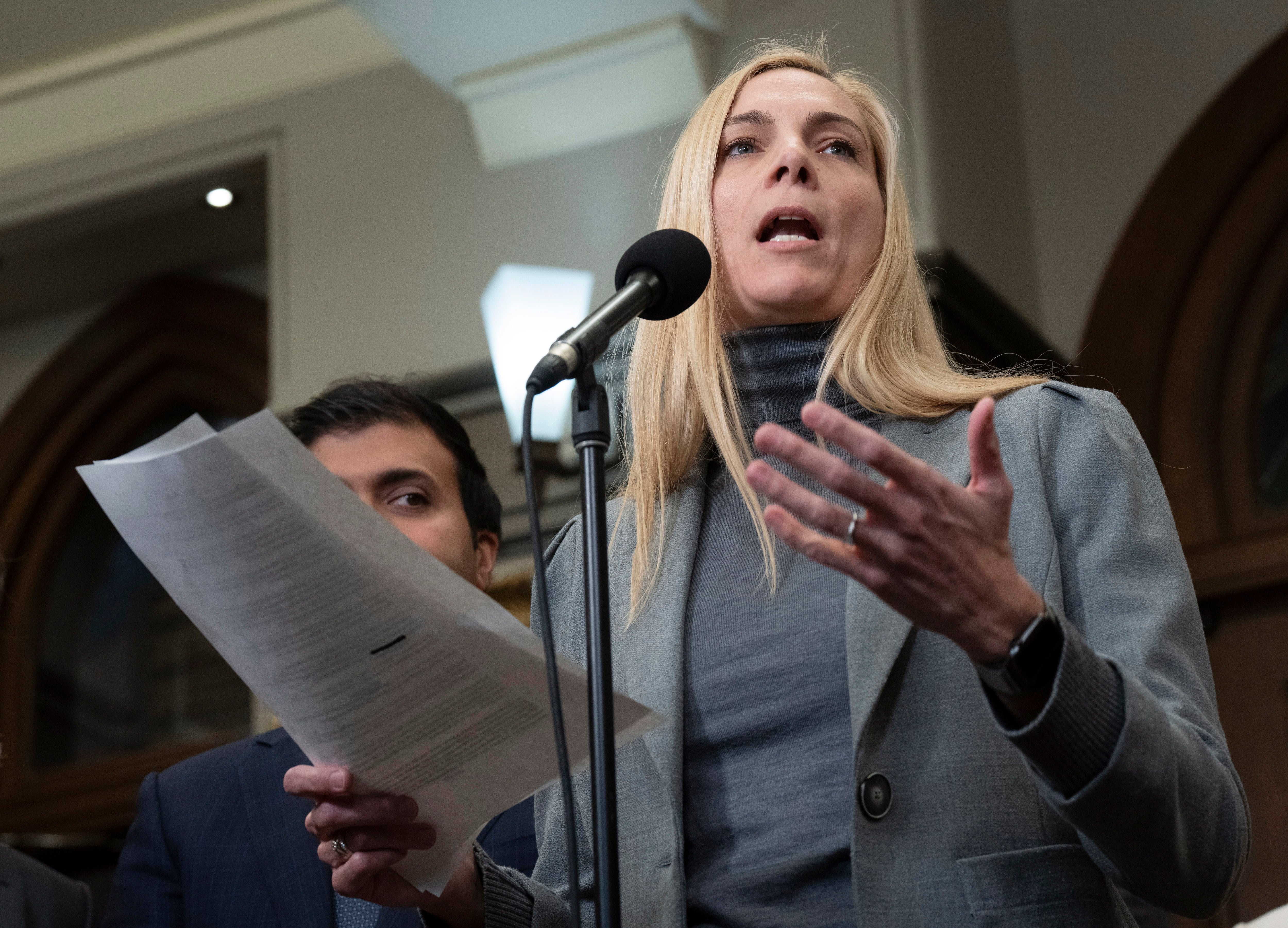 29일(현지 시각) 캐나다 오타와 국회의사당에서 열린 기자회견에서 파스칼 생옹쥬 캐나다 문화유산부 장관이 말하고 있다. 이날 생옹쥬 장관은 구글이 캐나다 언론사가 생산한 뉴스 컨텐츠에 대한 사용료를 지불하는 데 합의했다고 발표했다. /AP 연합뉴스 |