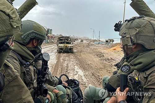 2일(현지시간) 팔레스타인 가자지구 북부 지상전 투입되는 이스라엘군 장병 |
