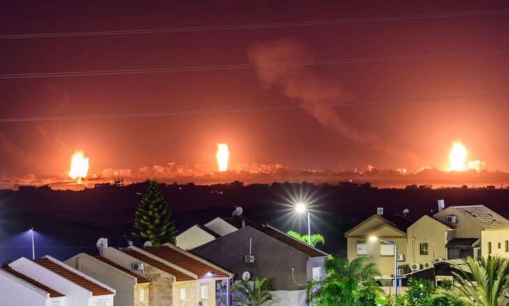 2일(현지시각) 이스라엘 남부 국경 지역에서 장시간 노출 기법을 활용해 찍은, 이스라엘군의 가자지구 폭격 모습. 이스라엘 남부/AFP 연합뉴스 |