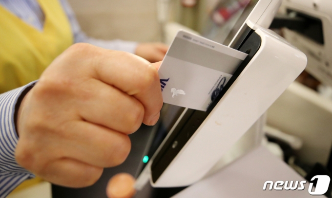 (서울=뉴스1) 김진환 기자 = 29일 오후 서울 중구 명동거리의 한 식당에서 시민이 카드로 결제하고 있다. 2021.6.29/뉴스1 |