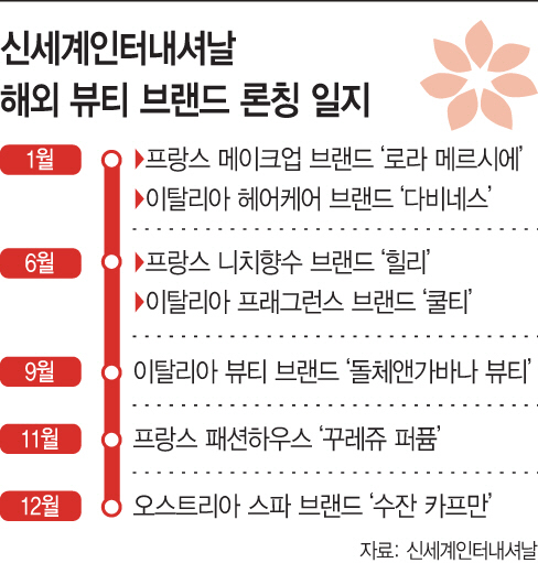 회사는 지난 1월 프랑스의 메이크업 브랜드 '로라 메르시에'를 시작으로, 이탈리아 헤어케어 브랜드 '다비네스'를 론칭했다. 6월에는 프랑스 니치향수 브랜드 '힐리'와 이탈리아 프래그런스(향기) 브랜드 '쿨티'의 독점 유통 계약을 체결했다. 최근에도 이탈리아의 '돌체앤가바나 뷰티'와 프랑스의 '꾸레쥬 퍼퓸'을 잇달아 론칭하며 라인업을 강화했다.