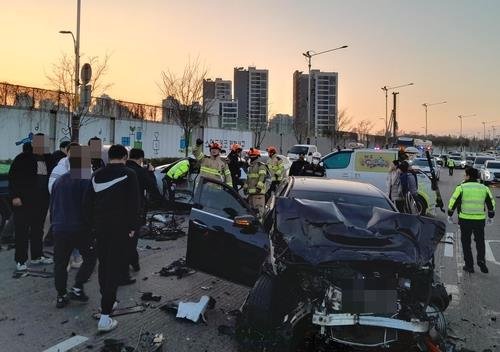 A씨의 차량은 신호 대기 중이던 QM3 차량을 추돌한 뒤 옆 차로에 있던 다른 차량 2대를 추가로 들이받았다. QM3 차량도 사고 충격으로 밀리면서 앞에 있던 차량 3대를 추돌했다.