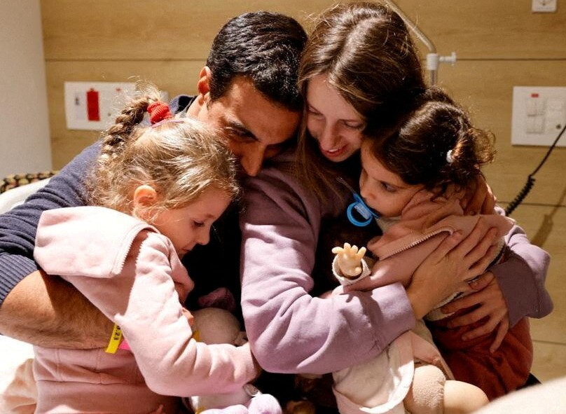10월7일 하마스 무장요원에게 납치됐다가 ‘일시적 교전 중단’ 합의에 따라 11월26일 풀려난 힐라 로템 쇼샤니가 가족을 만나 기뻐하고 있다. REUTERS 연합뉴스 |