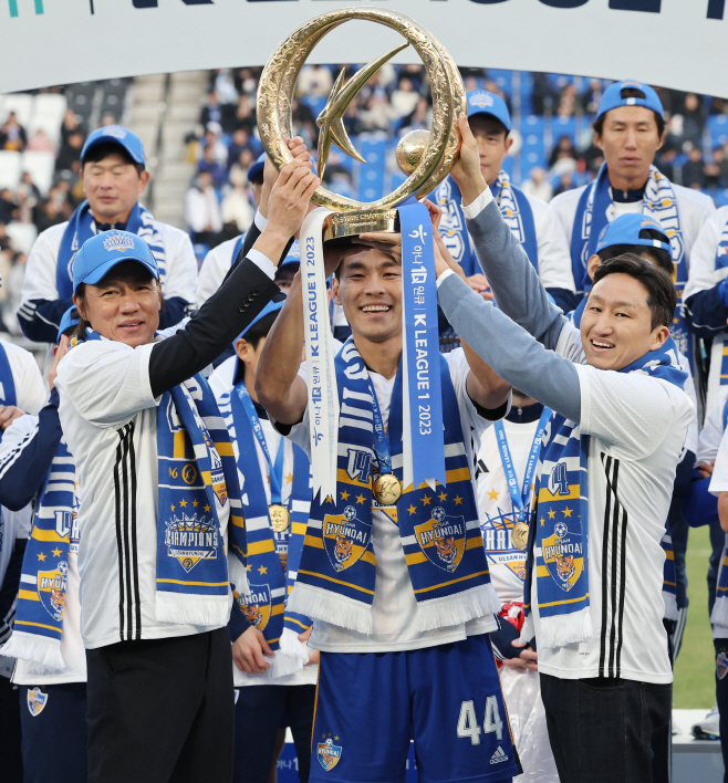이날 시상식에는 울산의 모기업인 HD현대의 정기선 부회장이 참석해 선수들에게 우승 메달을 걸어주기도 했다.