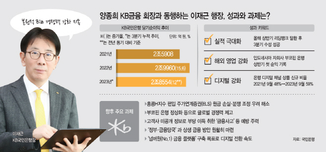 하지만 내년에도 글로벌 경기둔화 등 불확실성이 커지는 상황에서 이 행장의 어깨는 무겁다. 최근 금융권 화두로 떠오른 홍콩 H지수 관련 ELS(주가연계증권)사태를 잘 수습해야 하고, 인도네시아 부코핀은행의 정상화에도 속도를 내야 한다. 이에 더해 금융사고 재발을 막기 위한 내부통제 강화 노력과 함께 정부의 상생금융 요구에도 적극 대응해야 한다.