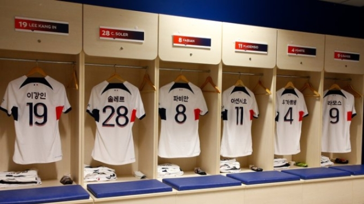 한글 유니폼이 준비된 PSG 라커룸. PSG SNS 캡처 |