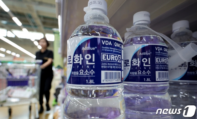 (서울=뉴스1) 장수영 기자 = 10일 오후 서울에 위치한 한 마트에 차량룡 요소수가 진열 돼 있다. 최근 중국 정부의 요소 수출 통제로 지난 2021년 겪었던 요소수 대란이 다시 일어날 수 있다는 우려가 생기고 있다. 2023.9.10./사진=뉴스1 |