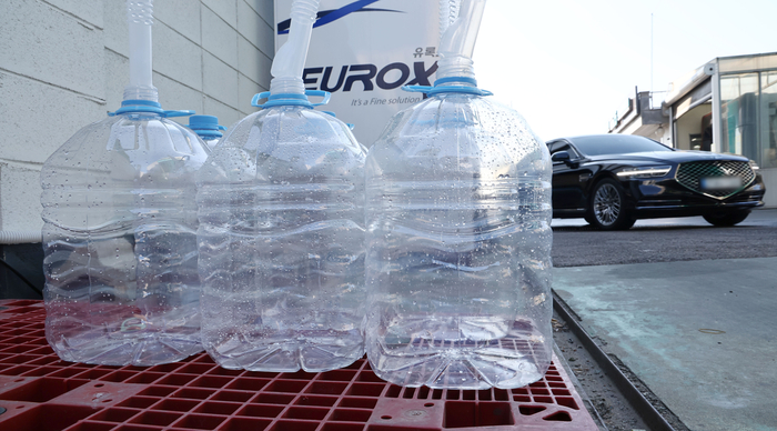 최근 중국 세관이 한국행 요소 수출 통관을 돌연 보류한 가운데 4일 경기도 고양시의 한 주유소에 사용 후 비어있는 요소수 통이 놓여있다. 연합뉴스 |