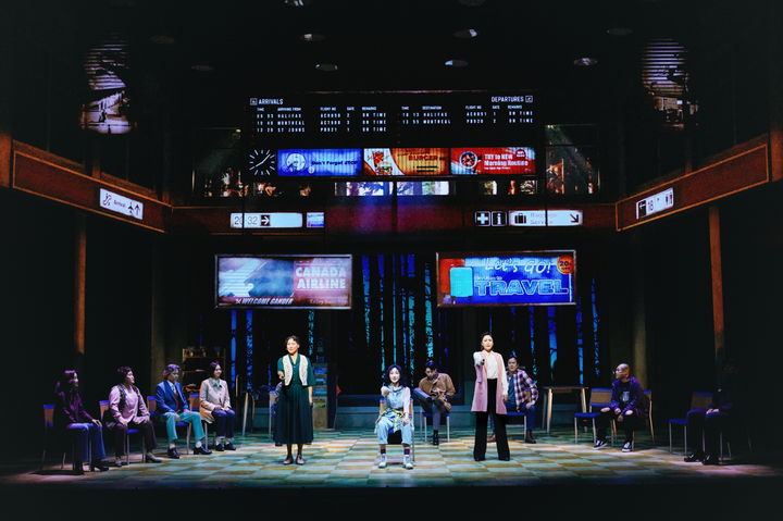 뮤지컬 '컴프롬어웨이'는 숨가쁘게 흘러간다. 12명의 배우들은 9.11 테러 당시 캐나다의 작은 마을 갠더에서 일어난 실화에서 영감을 얻어 탄생한 이 작품에서 주, 조연, 앙상블 구분 없이 1인다역을 소화한다. 갠더의 경찰 '오즈'역을 맡는 배우는 무려 10가지 역할을 해내야 한다.