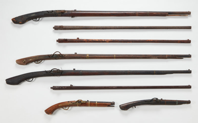 조선의 군영에서 제작한 여러 조총. 1593년부터 국내에서 만들기 시작해 17∼19세기 조선군의 주 무기로 쓰였다. 국립진주박물관 제공 |