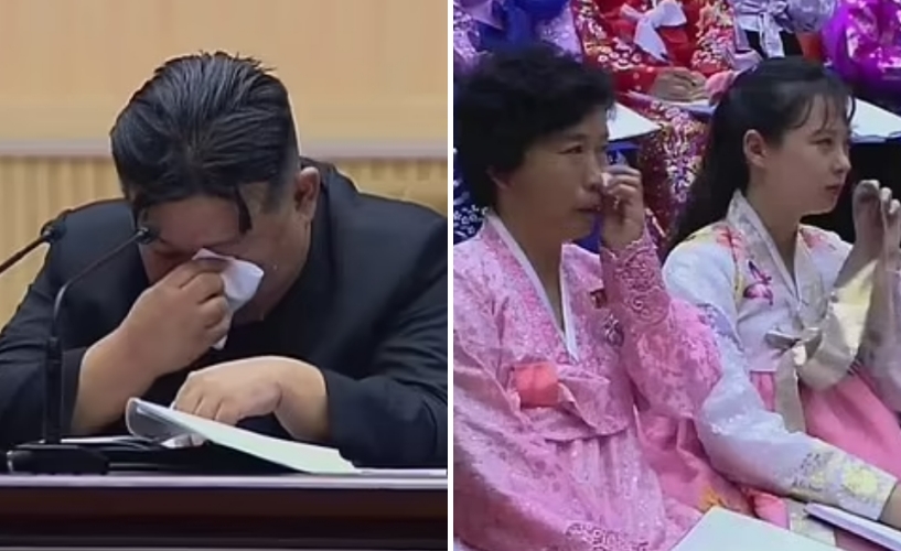 김정은 북한 국무위원장이 공식 석상에서 눈물을 보였다. 이를 본 참석자들도 오열을 감추지 못했다.