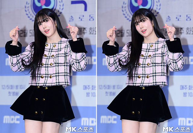 가수 권은비가 깜찍한 표정으로 포토타임을 가졌습니다.지난 12월 5일 오후 서울 마포구 상암MBC 골든마우스홀에서 MBC 새 예능 ‘솔로 동창회 학연’ 제작발표회가 열렸습니다.