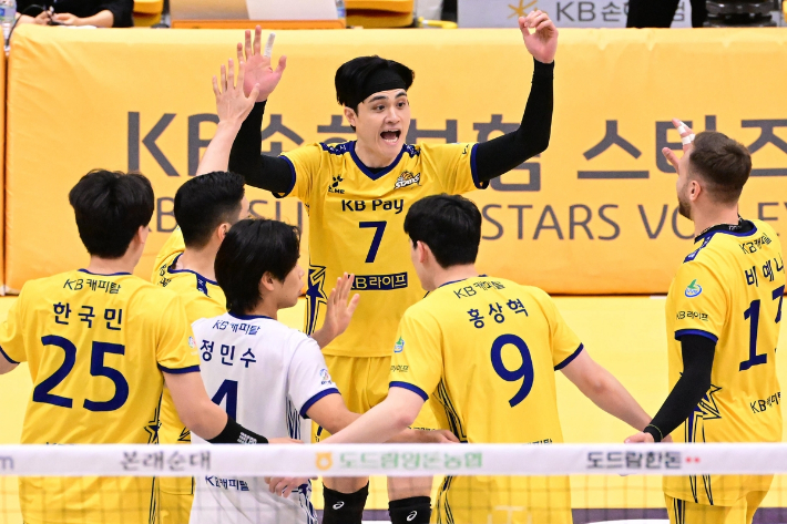 하지만 이날만큼은 달랐다. 연패를 끊겠다는 KB손보 선수들의 의지가 강했다. 1세트 14 대 15에서 KB손보는 상대 서브 범실과 홍상혁의 연속 득점으로 역전했다. 18 대 15에서는 비예나의 육탄 수비에 이어 김홍정이 상대 송희채의 공격을 블로킹하며 기선 제압에 성공했다.