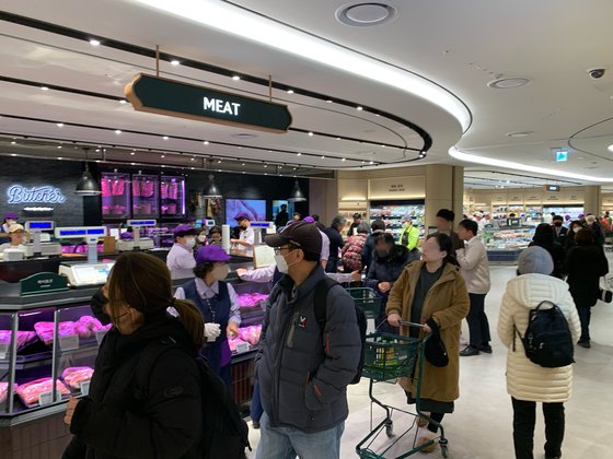 7일 오전 인천 미추홀구 롯데백화점 인천점에서 고객들이 지하 1층 식품관을 둘러보고 있다. 사진 롯데쇼핑 |