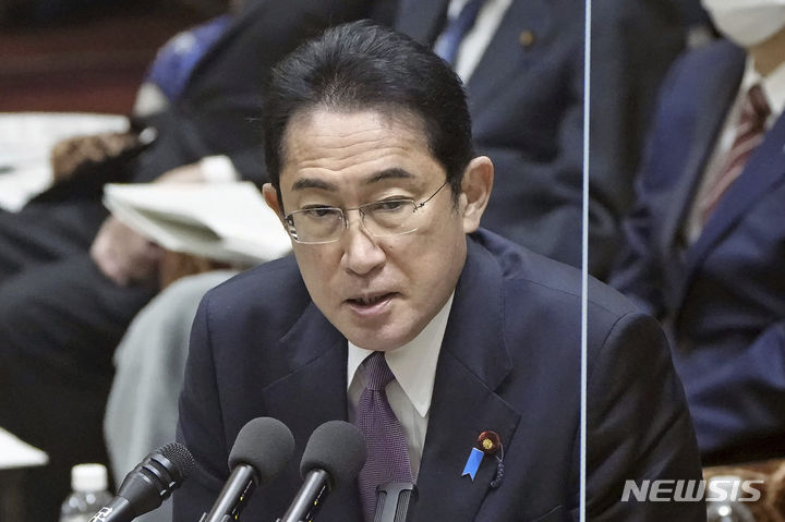[도쿄=AP/뉴시스]사진은 기시다 후미오 일본 총리가 지난 2월 도쿄에서 열린 중의원 예산위원회 회의에서 발언하는 모습. 2023.12.08. |