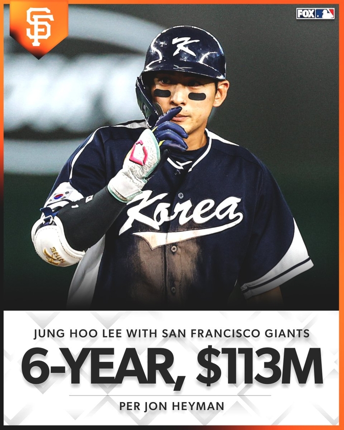 뉴욕 포스트 존 헤이먼은 13일(한국시간) 이정후가 샌프란시스코와 6년 1억1300만달러(1483억6900만원)에 계약을 체결했다고 밝혔다. 애초 이정후를 두고 샌프란시스코, 샌디에이고, 뉴욕 메츠 3파전이 진행됐는데 승자는 샌프란시스코가 됐다.