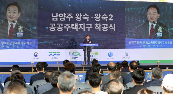 지난 10월 원희룡 국토교통부 장관이 경기도 남양주시 진건읍 사능양묘장에서 열린 3기 신도시 남양주 왕숙·왕숙2 공공주택지구 착공식에서 기념사를 하고 있다. /사진=뉴시스 |