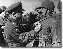 1950년 12월 군우리 전투 공로로 워커 중장으로부터 무공훈장을 받는 튀르키예 군인 |