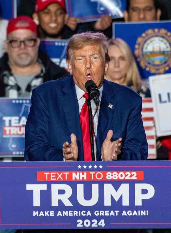 도널드 트럼프 전 미국 대통령이 16일(현지시간) 뉴햄프셔주에서 선거 유세에 나서고 있다. 2023.12.17 AFP 연합뉴스 |
