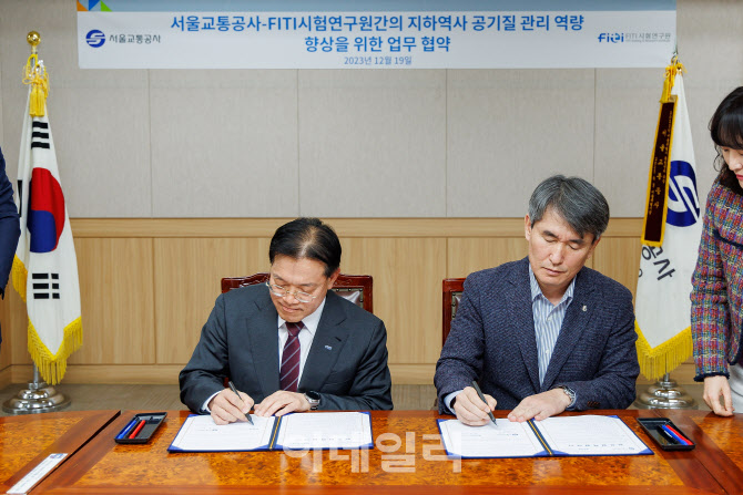 서울교통공사와 (재)FITI시험연구원이 19일 지하철 실내 공기질 개선과 관련한 사업 효과를 극대화하기 위한 업무협약을 체결했다고 밝혔다. (재)FITI시험연구원은 국내 최초 산업분야 미세먼지 저감 전문기술지원센터로 지정됐으며, 환경분야 미세먼지 저감 컨설팅 및 종합시험인증기관이다.