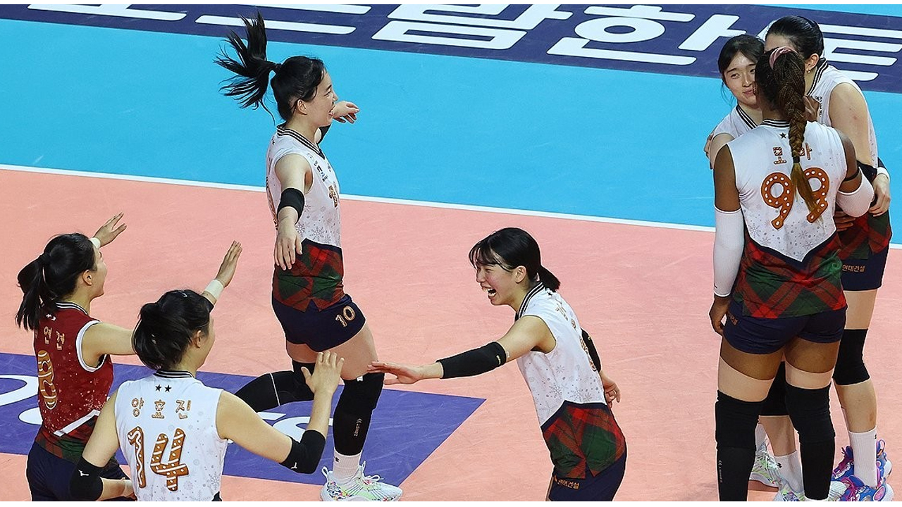 프로배구 여자부 현대건설이 주전 세터 김다인이 빠진 가운데도 김연경이 이끈 2위 흥국생명을 꺾고 선두 자리를 지켰습니다