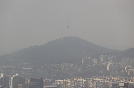 미세먼지에 뿌옇게 보이는 남산타워. 〈자료사진=연합뉴스〉 |