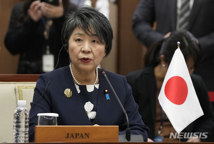 [부산=AP/뉴시스]가미카와 요코(上川陽子) 일본 외무상이 내달 4일부터 18일까지 미국 등 순방에 나선다고 27일 아사히신문이 보도했다. 사진은 가미카와 외무상이 지난 11월 26일 한국 부산에서 열린 한중일 3국 외교장관 회의에서 발언하고 있는 모습. 2023.12.27. |